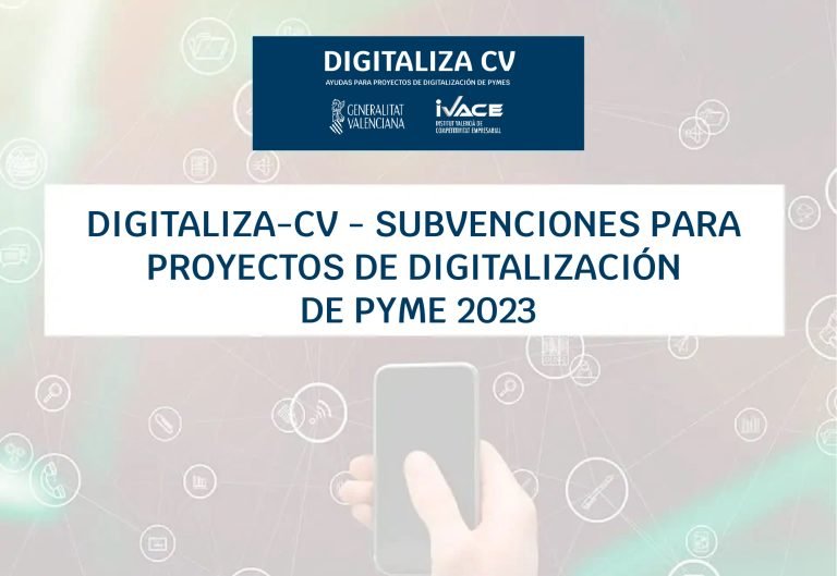 Programa DIGITALIZA-CV - SUBVENCIONES PARA PROYECTOS DE DIGITALIZACIÓN DE PYME 2023 Órgano Gestor Instituto Valenciano de Competitividad Empresarial (IVACE) Ámbito…